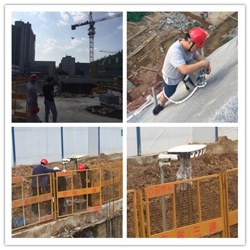 我公司于2016年9月在中科大科研楼,进行基坑监测、视频融合、RFID、智能验收等项目的布设。根据现场实际情况确定一个合适的基准点,并根据该基准点对监测点和被监测点进行准确定位(确定坐标)。基准点的复核联测频率为1次/3月,用仪器进行首次测量,并记录初始值。目前已取得阶段性成果,并得到广泛好评。图为施工现场及仪器安装情况。